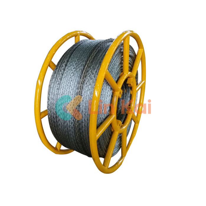 เชือกเหล็กถักป้องกันการบิดเกลียวขนาด 16 มม. ใช้สำหรับดึงตัวนำไฟฟ้าสองตัวที่มัดรวมกันบนสายส่งเหนือศีรษะ สามารถใช้เป็นเชือกนำร่องเพื่อดึงตัวนำที่ใหญ่กว่าบนสายส่ง 500KV เชือกเหล็กถักป้องกันการบิดเกลียว 16 มม. ทำจากลวดเหล็กขนาดเส้นผ่านศูนย์กลาง 3.5 มม. ถักจากลวด 1X19W 12 เส้น บรรจุใน 1200 มม. X1100MX 560 มม. หรือปรับแต่งตามความต้องการของลูกค้า 1,000 ม. / ม้วน