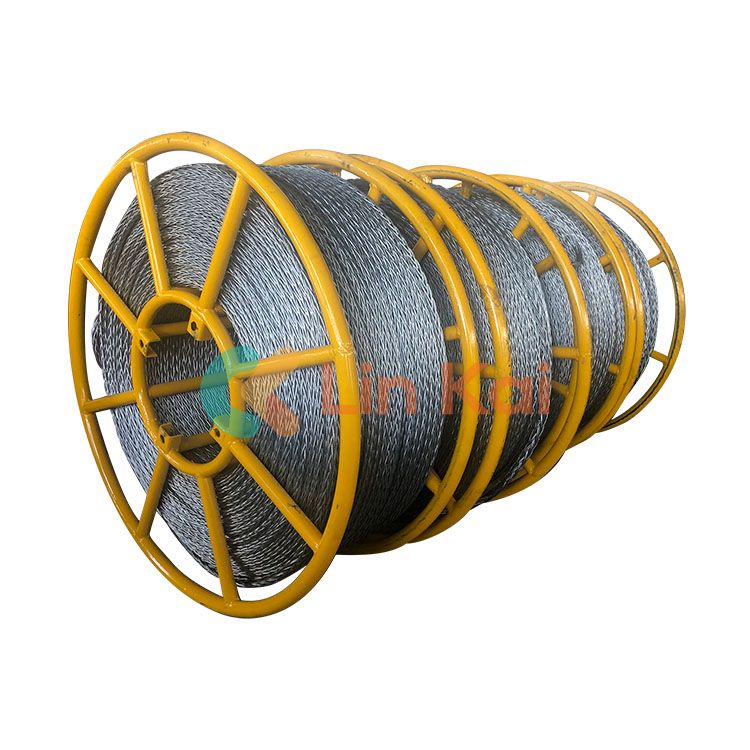 เชือกเหล็กถักป้องกันการบิดเกลียวขนาด 16 มม. ใช้เป็นเชือกลวดนำร่องสำหรับดึงตัวนำหรือสาย OPGW ในการดำเนินการร้อยสายส่งเหนือศีรษะ