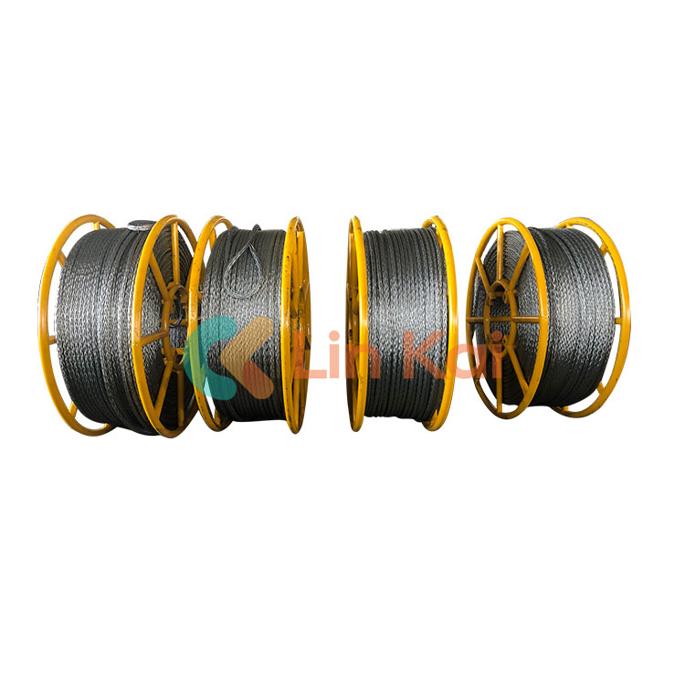 เชือกลวดเหล็กถักป้องกันการบิดเกลียว 12 เส้นสามารถกระจายแรงกดระหว่างสายพื้นฐานได้เป็นเนื้อเดียวกัน เชือกพิเศษสามารถเพิ่มประสิทธิภาพในระหว่างงานร้อยสายส่งเหนือศีรษะ เชือกเหล็กถักป้องกันการบิดเกลียวขนาด 16 มม. บรรจุในถังเหล็กซึ่งสามารถติดตั้งได้โดยตรงบนเครื่องม้วนรอกของเครื่องดึง